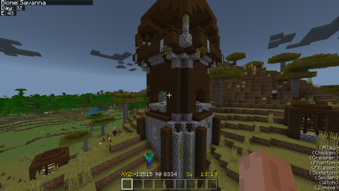 Yakındaki NPC hakkında bilgi dokuları, Minecraft için en kullanışlı eklemelerden biri olarak kabul edilebilir. Bu eklentinin amacı, kahramanınıza yakın olan tüm NPC'ler ve yaratıklar hakkında ayrıntılı bilgi sağlamaktır. İşlevin sınırlamaları vardır - 25 blokluk bir yarıçap içindeki çeteler hakkında bilgi sağlanır. Her zaman yanınızda kimin yaşadığının farkında olacaksınız.