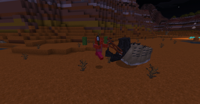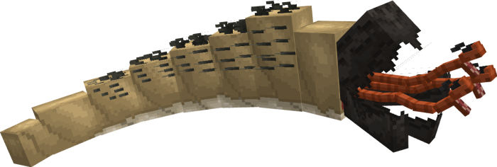 Minecraft'ta çöllerin sessiz bir yer olduğunu düşünüyorsanız yanılıyorsunuz! Mod Tremors, çöl biyomlarını kökten değiştirecek, onlara çok tehlikeli ve kana susamış yaratıklar ekleyecek bir eklentidir. Bu parazitler korkunç bir görünüme, keskin dişlere ve yüksek sağlığa sahiptir. Bu nedenle ıssız yerlerde dikkatli olunması tavsiye edilir.