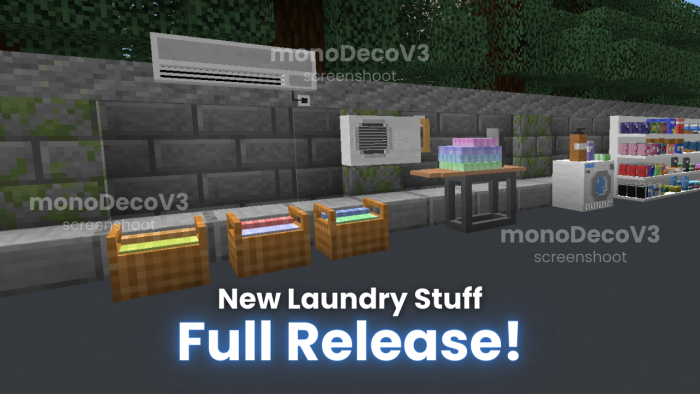 Mod MonoDeco Mobilya, Minecraft'taki evinizi yeni aksesuarlar, aletler, masalar, kanepeler ve diğer iç öğelerle dekore etmenize yardımcı olacak yeni bir mobilya montajıdır. Eklenti, elektronik ekipman, banyo malzemeleri, kanepeler, yataklar, aydınlatma ve birçok faydalı şey dahil olmak üzere en gelişmiş ve popüler öğeleri içerir.
