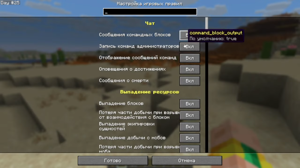 - Oyun içi dünya ayarları: Artık ana menüye çıkmanıza veya karmaşık konsol komutlarını hatırlamanıza gerek yok. Oyun kuralları ekranı (Game Rules), yeni "World Options" (Dünya Ayarları) düğmesi aracılığıyla duraklatma menüsünden erişilebilir.