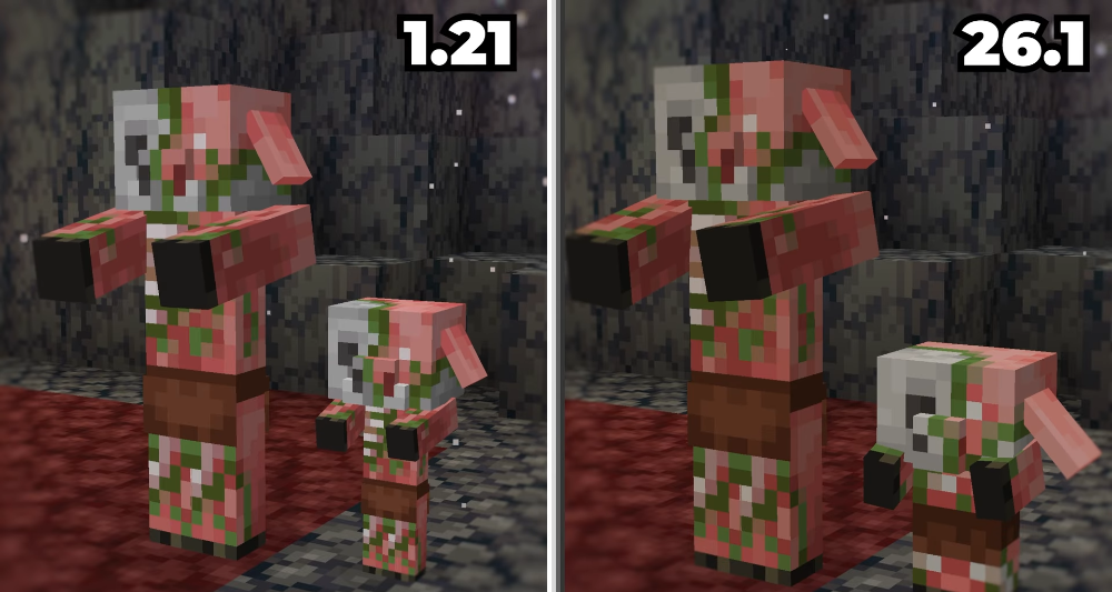 Mojang ekibi, oyunun görsel bileşenlerini iyileştirme çalışmalarına devam ediyor ve bu kez dikkatlerini mob yavrularına çevirdi. Güncellemeyi, zombi, husk, drowned, piglin, zombileşmiş piglinler ve köylüler ile onların zombi versiyonları aldı.
