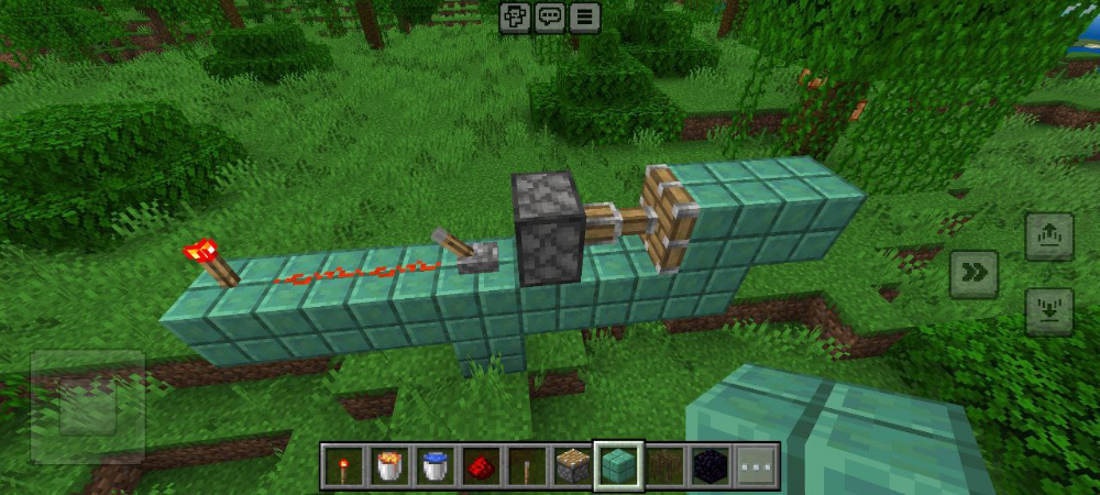 - Yapışkan Piston: Normal pistona slime topu eklenerek oluşturulur. Blokları itmekle kalmaz, sinyal kesildiğinde geri çeker.