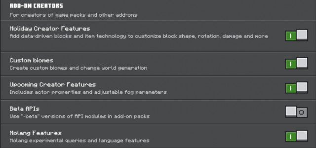 Modun çalışması için harita ayarlarında Deneysel seçenekleri etkinleştirmeniz gerekir.