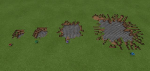 TNT blokları, güçleriyle orantılı olarak patlamanın gücünde farklılık gösterir ( 2, 4 ve 8 kat ).