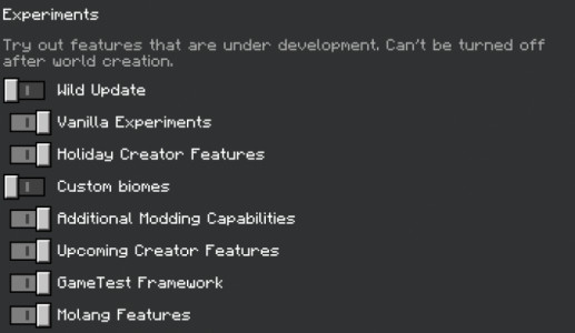 Modun çalışması için harita ayarlarında Deneysel seçenekleri etkinleştirmeniz gerekir.