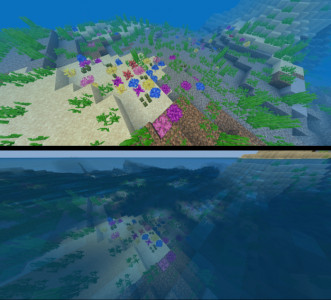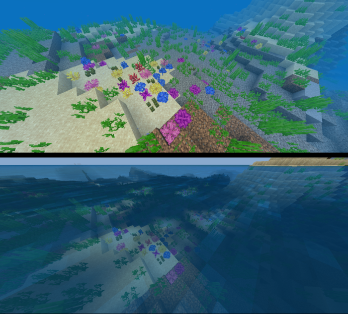 Biyomlar Ovalar ve okyanuslar, özel bir bitki örtüsüyle ayırt edilmez. Bu nedenle, bu modun yazarı onları süslemeye karar verdi ve Minecraft için Küçük yapraklar, çimenler ve mercanlar modunu geliştirdi. Kurarak önemli farklılıkları fark edeceksiniz, oyunun bu alanları daha çimenli hale gelecek ve okyanusun dibinde daha fazla mercan kayalığı olacak.