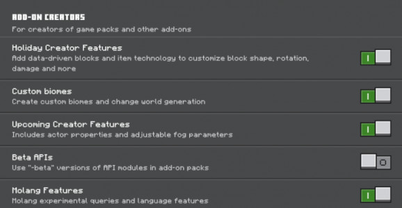 Modun çalışması için harita ayarlarında Deneysel seçenekleri etkinleştirmeniz gerekir.