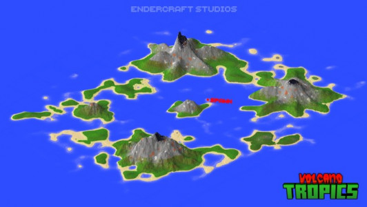 Harita Volkanlı tropikler for Minecraft, geliştiriciden (Endercraft Studios) farklı boyutlarda 4 volkan içeren 10 adadan oluşan bir bölge şeklinde bir eklentidir. Bölgelerin toplam alanı yaklaşık 1500x1500 bloktur. Böyle bir arazi, Hayatta Kalma Moduna katılmak için iyi bir seçenek olabilir.