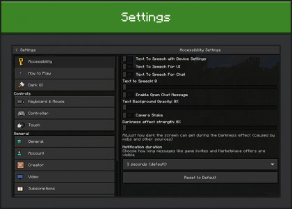 Dokular Dark arayüzü ve şeffaflık for Minecraft, oyunun arayüzünü siyah yaparak değiştirmenize olanak tanır. Modun yazarı (Kaynak), orijinal ayarları ve stilleri değiştirmek için ek seçenekler de ekledi.