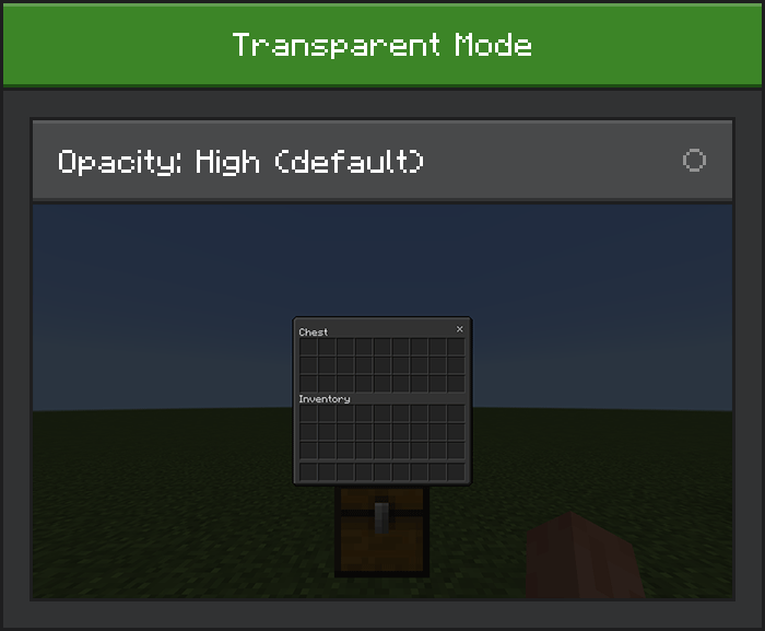 Ayarlarda ayarlanabilir. Oyun içi ekranlar (envanter, sandık ve diğerleri) için geçerlidir. Maksimum şeffaflıktan minimum şeffaflığa kadar 3 seviye ayarlamak mümkündür.