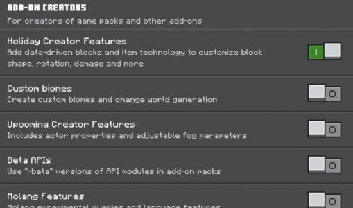 Modun çalışması için harita ayarlarında Deneysel seçenekleri etkinleştirmeniz gerekir.