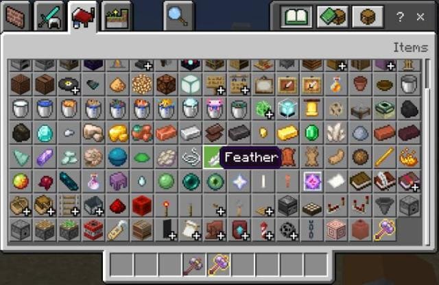 - Bundan sonra, envanterdeki öğeleri içeren bir menü görünmelidir (daha fazla yapılandırılabilir).