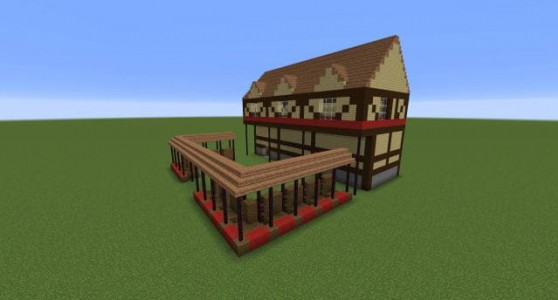 Dışarıdan, ev, çatı şeklinde, desteklerde ve renk şemasında ifade edilen ortaçağ tarzında dekore edilmiştir. Odanın içinde dekorasyon yoktur, bu yüzden beğeninize göre yeniden düzenleyebilirsiniz.