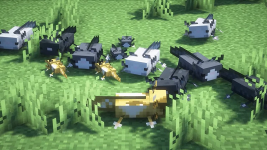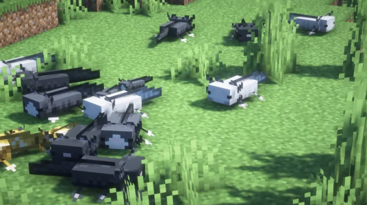 Aksolotları kim sevmez? Bunlar, su altı biyomlarının dekorasyonu olan sevimli çetelerdir. Ancak bu yaratıkların klasik görünümünden sıkıldıysanız, Minimit'in Axolotl'ları Textures'ı yüklemekten çekinmeyin. Ekleme, bu amfibilerin dış rengini büyük ölçüde değiştirecek ve bunun sonucunda kahverengi, benekli ve hatta tamamen siyah Axolotl'larla karşılaşabilirsiniz. Toplamda, montaj bu yaratıkların renklerinin 5 varyasyonunu ekler.