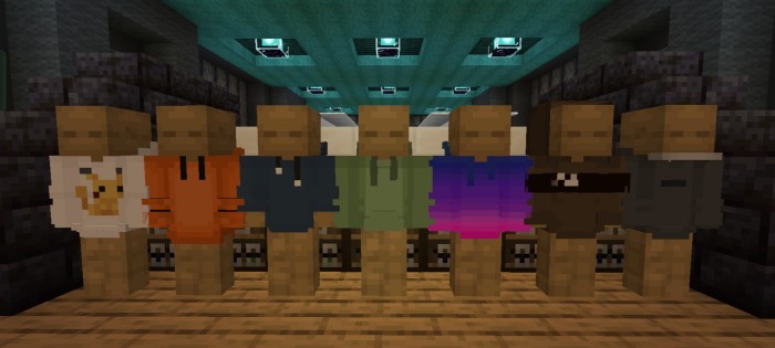 Anastasia'dan giysiler modu, Minecraft oyununa 180'den fazla farklı aksesuar türü ekler: maskeler, şapkalar, giysiler ve daha fazlası. Bunu kullanarak, karakteri bireysel bir görüntü ve tarzda süsleyebilirsiniz. Her şey 3D grafiklerde yapılır ve oyunun konseptine tam olarak uyar.