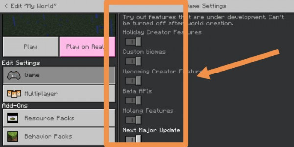 Modun çalışması için harita ayarlarında Deneysel seçenekleri etkinleştirmeniz gerekir.