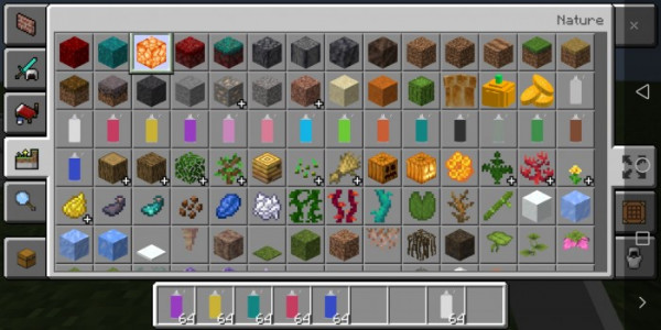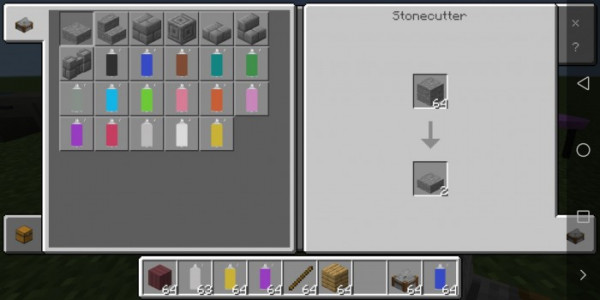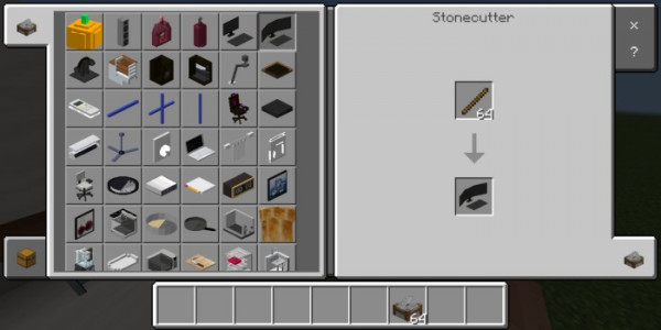 Varsayılan olarak, aşağıdaki öğelerin tümü bir taş kesici kullanılarak veya yaratıcı bir envanter aracılığıyla elde edilebilir.