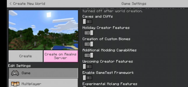 Modun çalışması için harita ayarlarında Deneysel seçenekleri etkinleştirmeniz gerekir.