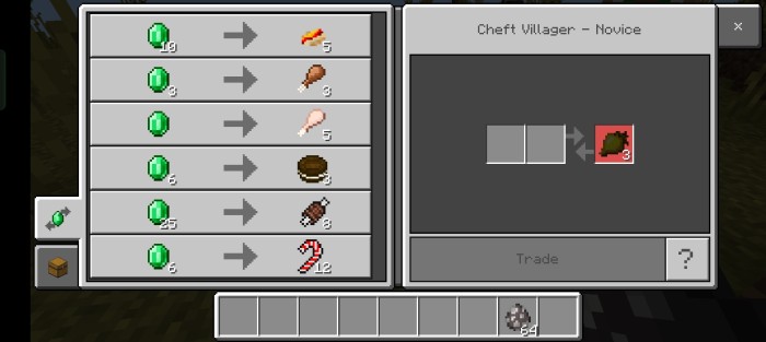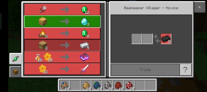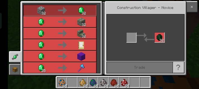 Köylüler için daha fazla meslek, Minecraft'a farklı meslekleri temsil eden yeni köylüler ekler. Faaliyetleri yeni ürünler ve fırsatlar sunacak, alanlardan biri gıda endüstrisi, daha geniş bir gıda türü listesi satın almak mümkün olacak. Ayrıca arıcılar, inşaatçılar - yeni bloklar (normal hayatta kalmada mevcut değildir), iksir satın alabileceğiniz doktorlar ve diğerleri olacaktır.