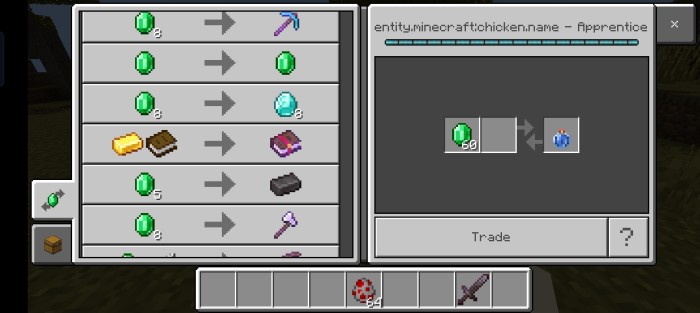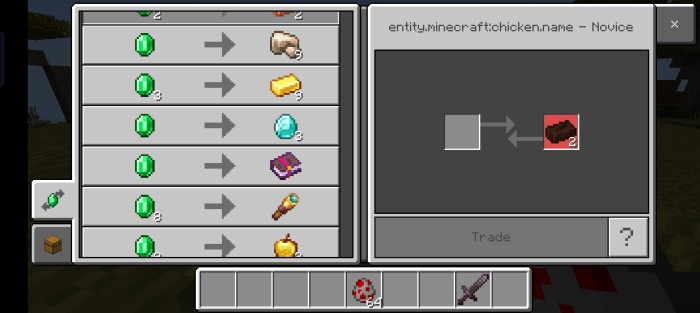 Ürün satan tavuklar modu , Minecraft'ta Tavuklarla ticaret yapmanıza izin verir, ancak bu durumda kuşlar alışılmadık OP öğeleri sunabilir. Modun yazarı, bu çetelerle çeşitli seviyelerde ticaret fırsatları sağlamıştır, toplamda 3 aşama olacak ve ne kadar yüksek olursa, teklifler o kadar ilginç olacaktır. Tüyler oyuna yumurta kullanılarak eklenir.