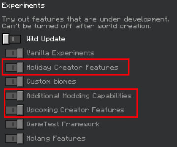 Modun çalışması için harita ayarlarında Deneysel seçenekleri etkinleştirmeniz gerekir.