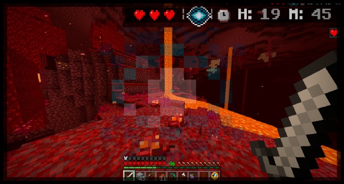 The Hardcore Crescent Night mode mod is an add-on for Minecraft that turns the familiar world into a hardcore one, where the main acting force is the Moon. The rules of this mod will now be that you only have three lives (hearts). You need to understand the features of this universe and adapt to a new life.