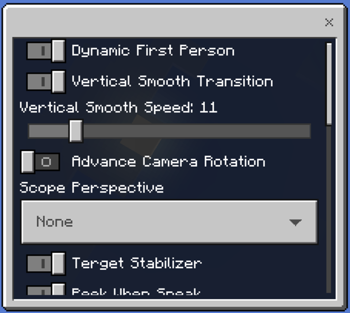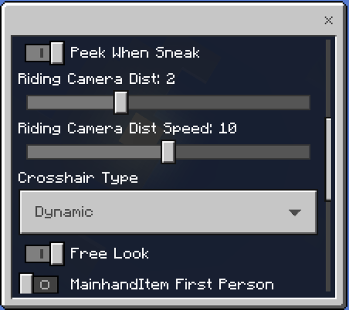 - Peek When Sneak - adjust the angle of inclination while squatting.