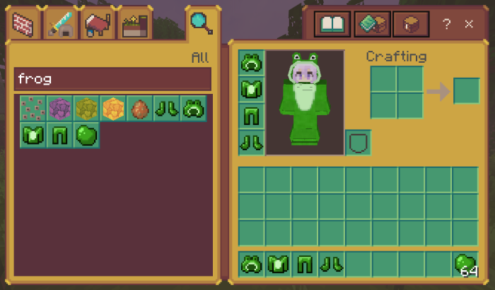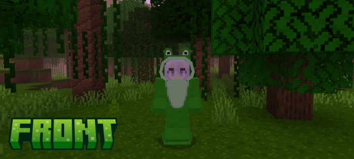 Mod 3D Frog Costumes invites Minecraft players to try themselves in the role of Amphibians and engage in exciting exploration of the deep sea and land world. At your disposal will be a beautiful fancy dress resembling a frog. The new look will give you a lot of positive emotions and a unique gaming experience.