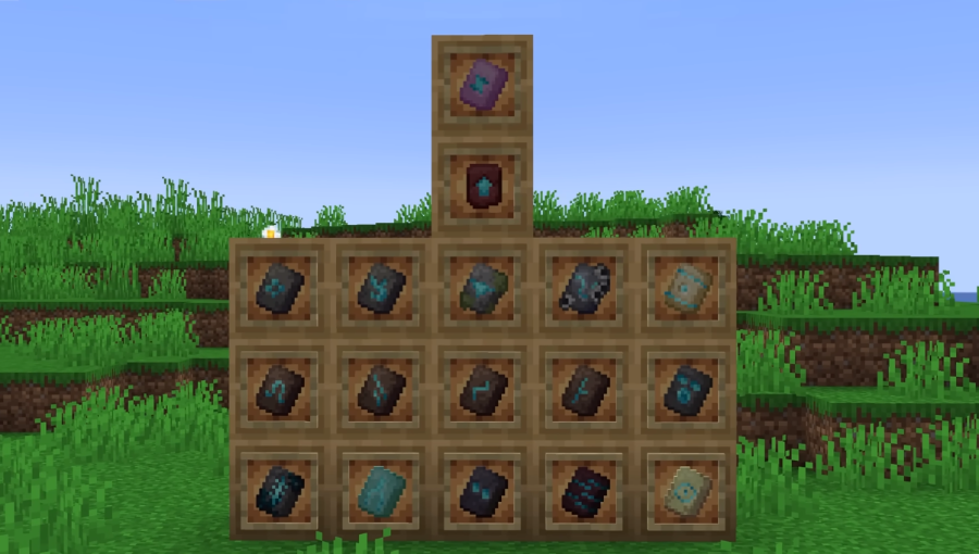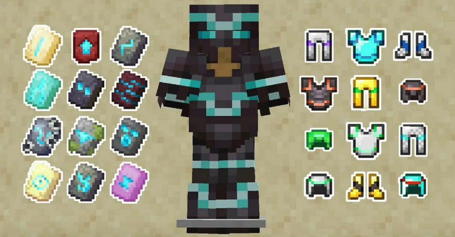 This is a new way to improve the player’s equipment, which makes it possible not only to increase the characteristics of the armor, but also to decorate it with new patterns. Templates are rune-shaped stones used on a blacksmith's table. At the moment, there are 17 templates in the public domain, which can be combined in every possible way with various stones to obtain a unique result. As a decoration material, you can use: copper, emeralds, redstone, diamonds, gold, and other resources.