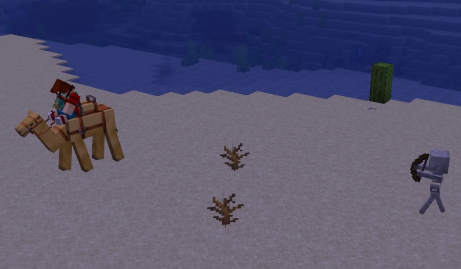 This is a new riding mob in Minecraft, the useful properties of which are much higher when compared to the classic horse. The first advantage is the carrying capacity - 2 players. Due to the fact that the size of the mount is quite high (2 blocks), many mobs will not be able to reach you with physical attacks, but this property does not apply to ranged attacks. The developers added several movement modes to the Camel: Walking, Galloping, and Dash. The Dash allows you to cover a distance of 12 blocks in one jump.