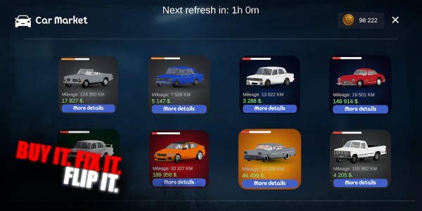 The damage physics are impressively realistic — every scratch, dent, or rust spot affects the car’s value. The sound effects are so accurate that experienced players can diagnose engine problems by sound, just like real mechanics.