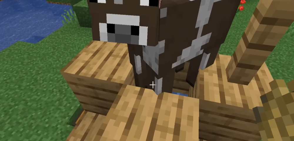 Just bring two cows? Yeah, anyone who's tried knows — it's a whole series of comedic sketches. One cow tries to drown in a stream, the other decides to wander to the other end of the map. Honestly, I almost gave up! But F3+B and my persistence did the trick: both beauties finally settled into their new home. If you don't want the hassle, try spawn eggs (though, of course, that's not possible in survival mode).