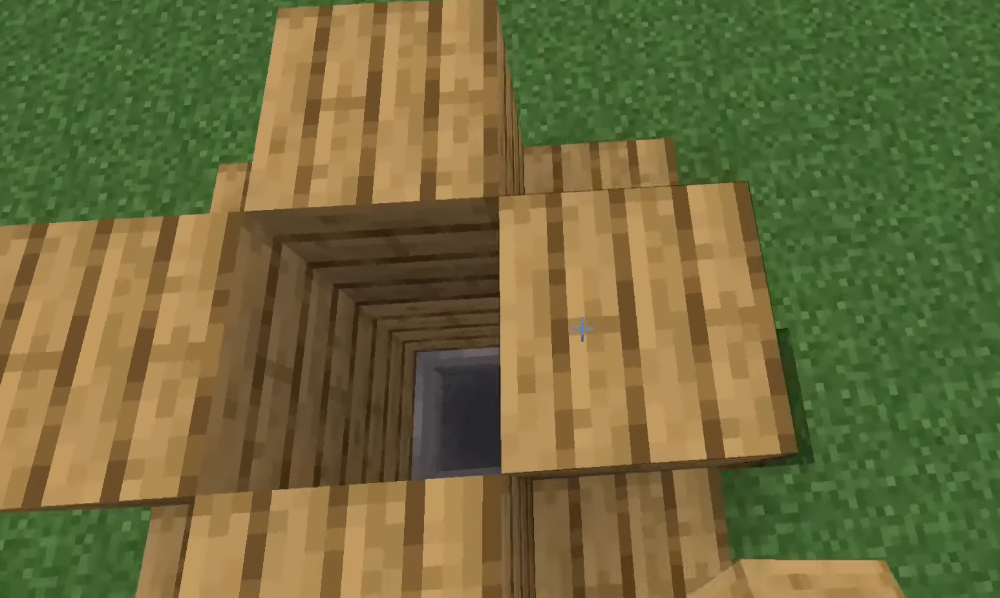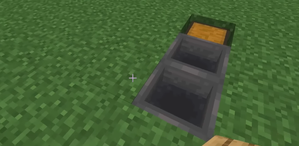 It all starts, of course, with a pit. Sounds simple? Sure, but try calculating everything so that the chest, two hoppers, and a wooden frame fit neatly into the landscape. I rotated it from all angles, feeling like an architect-reconstructor. And yes, the feeling of having a future food flow beneath your feet gives confidence!