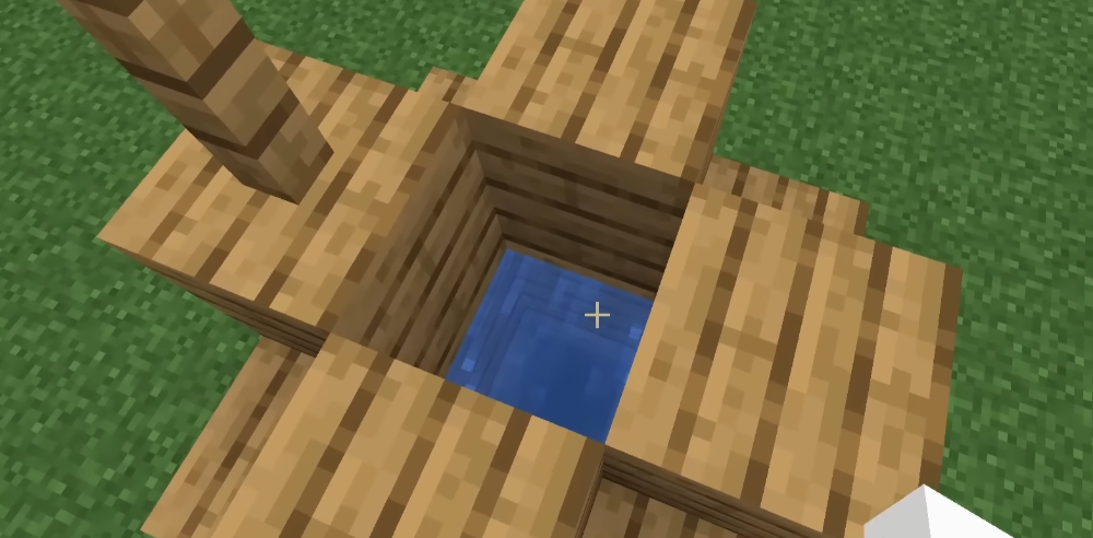 I surrounded everything with wood — practical and atmospheric. I placed an oak fence, poured a bucket of water on top — and voilà , a cozy residence for my future cows. It's a celebration to see your build start to make sense.