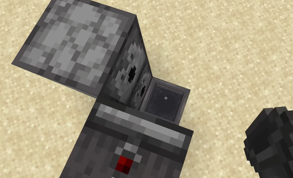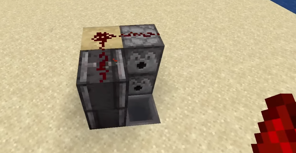 - Add a solid block to the side, and on top — a redstone path to unify the automation.