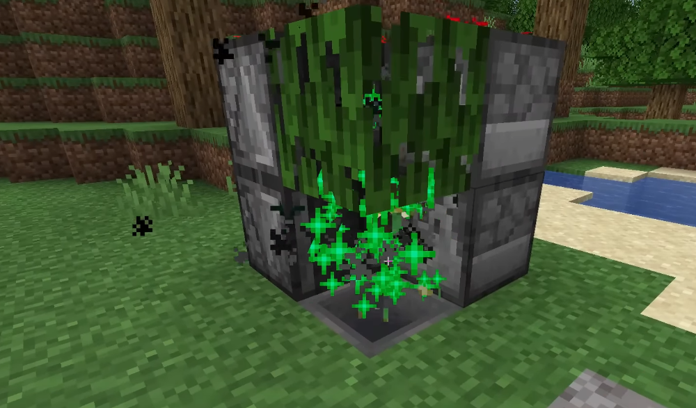 - Two dispensers placed side by side. One will work its magic with bone meal to produce fresh saplings, the other — will speed up leaf growth (thanks, technology!).