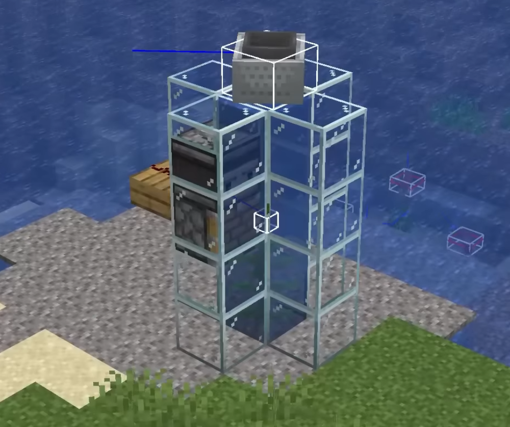 The funniest part of this farm isn’t the building process, but how the harvest is collected! Everything that falls into the water slowly floats to the surface, like a costume at a masquerade. Place a rail and a hopper minecart on top. The first time I tested it — I laughed out loud: the kelp barely touched the minecart’s box or even passed by — WHOOSH — and straight into the inventory! Genius, simple, and… it’s like watching a hypnotic show.