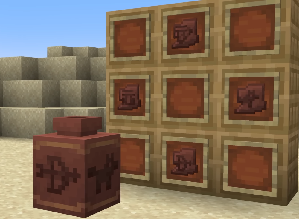 One of the most anticipated mechanics was archaeology. Now, in desert temples, wells, and the newly added trail ruins, players can find a new block called suspicious sand. Using a new tool, the brush, players can carefully excavate to uncover valuable artifacts.
