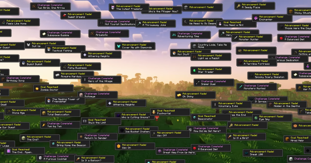 Over time, Minecraft expanded with new content: new biomes, dimensions, mobs, and mechanics appeared. The old, rigidly coded achievement tree could no longer keep up. In response, Mojang introduced a completely new system called «Advancements» in the 1.12 update (World of Color Update) for Java Edition.