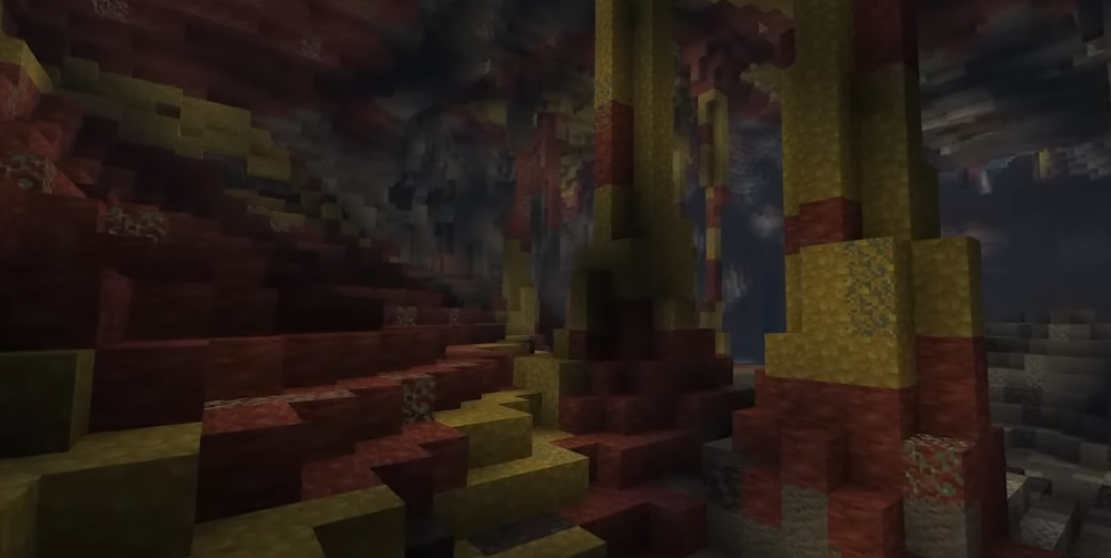 The main innovation is the Sulfur Caves biome. This unique underground zone is inspired by real geothermal springs. The caves are densely covered with glowing lichen and filled with small lakes.