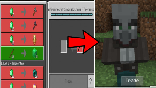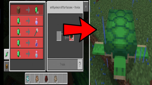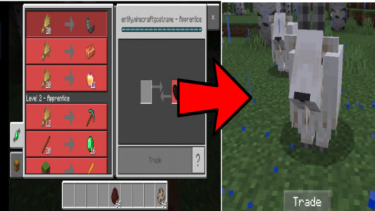 In this addon, each NPC has a certain level, depending on which these mobs trade a certain list of items. For example, a ram will trade in magical tools, and a turtle's list of goods will be reduced to trade in potions and emeralds. These are just a few examples and the list doesn't end there. The main goal of the mod is to greatly simplify the gameplay of players in survival mode, at least at the initial stages.