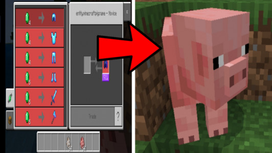 If playing in survival mode in Minecraft causes you some difficulties, mainly related to finding and extracting useful resources in the form of gold or the same diamonds, then the Super OP Trading All Mobs mod will be very useful for you. The addon allows you to extract hard-to-find resources that you can then exchange for food, items or rare resources.