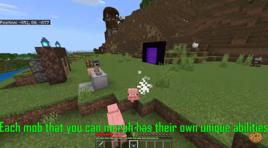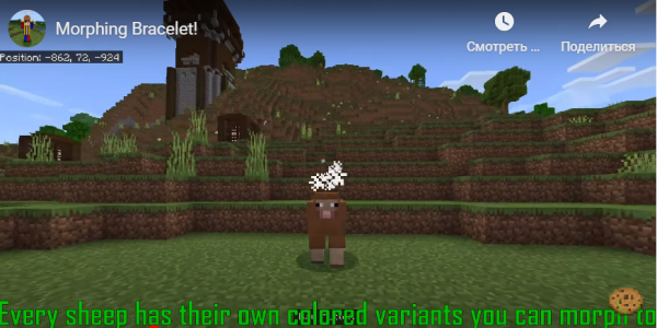 Mod Transformation into mobs 2 allows you to get the ability to turn into any mob. For this, a special bracelet is provided. Such features may be needed for different cases, at your own discretion. You can become, for example, an evil mob or one of the animals.