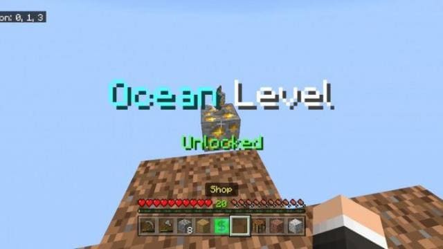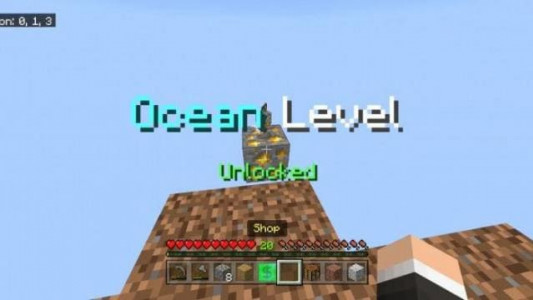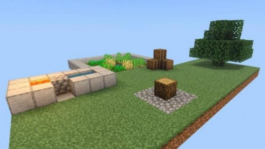 One Blocco map - the very name of the add-on suggests that the beginning of your adventures in Minecraft starts with a single block. The map is a skyblock quest, where the primary mission of the gamer will be survival in difficult conditions, presented in the form of limited resources that need to be obtained. After you appear on the map, you need to destroy this block in order to get a new material or structure.