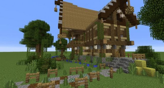 For Minecraft players who are tired of constructing their own dwellings on their own every time, and getting an ugly hut at the end, we offer a new Spacious house 2 construction option, which, in addition to all the functionality, also has a bright appearance. The building includes several floors with attics and nearby landscaping. The rooms are quite spacious and allow you to use the premises at your discretion.