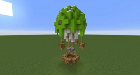 The Hot hot air balloon building is another prototype of aircraft in Minecraft, with which you can decorate your habitat. The balloon is made in light green tones using wood. From above, the building is decorated with a large dome that can glow in the dark.