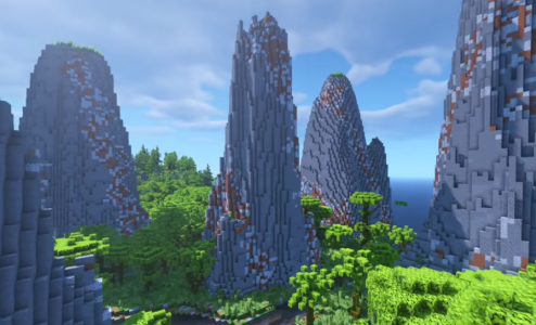 The Floating islands with canyons map is a new addition for Minecraft to use in survival. A very beautiful view of the islands with different locations, some of which are in the form of a tropical territory in the middle of the ocean. Here you can find an ancient temple that can be reached by a bridge, a waterfall, a beautiful landscape.