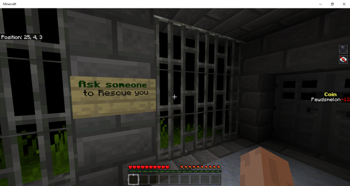 De acuerdo con las reglas, participan 6 personas, donde 1 es un maníaco y 5 son supervivientes. Si juegas como este último, busca monedas esparcidas por el edificio. El Maniac usará una Armadura Netherite. Si te matan, te teletransportas a la jaula. Si recoges 50 monedas, puedes devolver a tu amigo al juego si corres hacia la jaula.