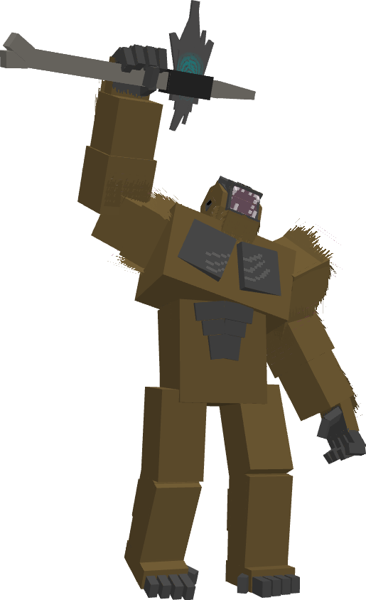 - Gorila con un hacha enorme en sus manos.