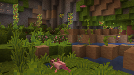 Las texturas han logrado este resultado debido al procesamiento de color de casi todos los bloques y materiales que han recibido nuevos tipos de coloración. Además, los NPC se han rediseñado y han recibido máscaras detalladas con nuevos elementos.